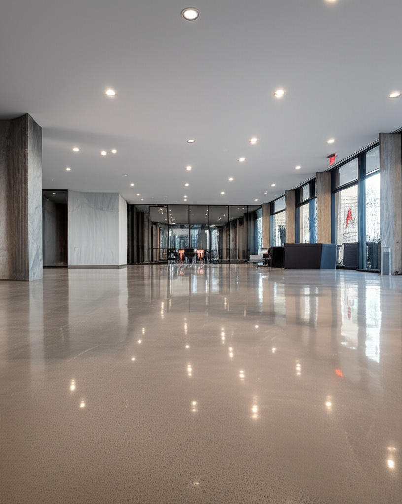 3,500 sq ft high-gloss polished concrete for a Class A office building lobby in Midtown.
